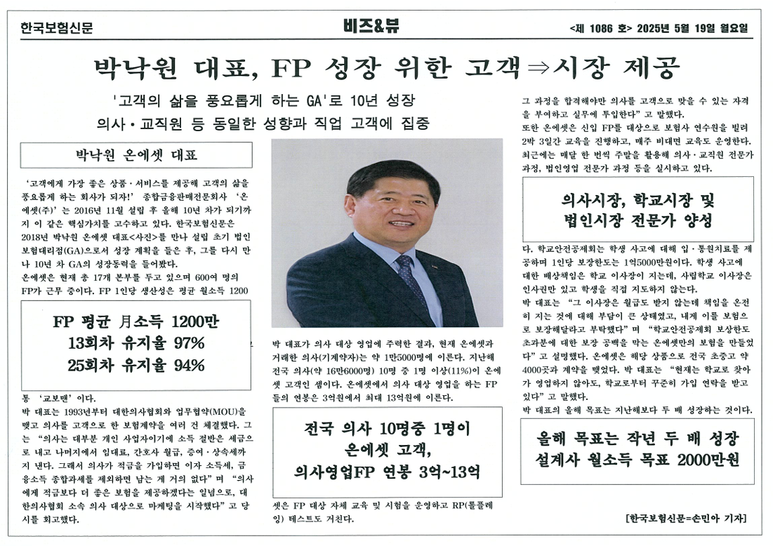 2025-05[한국보험신문]박낙원 대표, 고객 성장 위한 고객 → 시장 제공