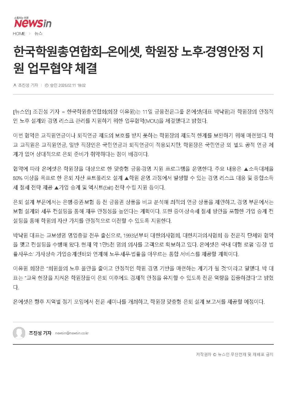 2026-03한국학원총연합회, 온에셋과 손잡고 학원장 맞춤형 노후•경영 지원 체계 구축